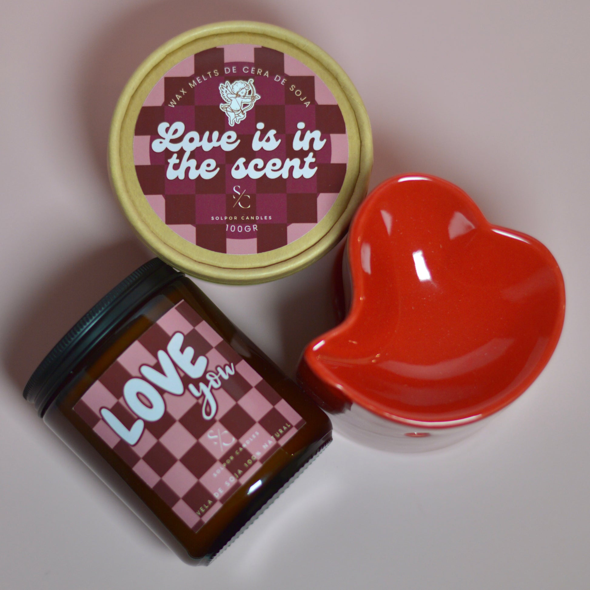Celebra el amor con nuestro Pack Rojo Pasión. Incluye un quemador de cerámica rojo brillante, una vela aromática de 250 g con aroma a Pirueta y wax melts a juego disponibles en 50 g o 100 g. Diseñado para llenar de calidez y romanticismo cualquier momento, ideal para regalar y disfrutar de instantes llenos de cariño en San Valentín.