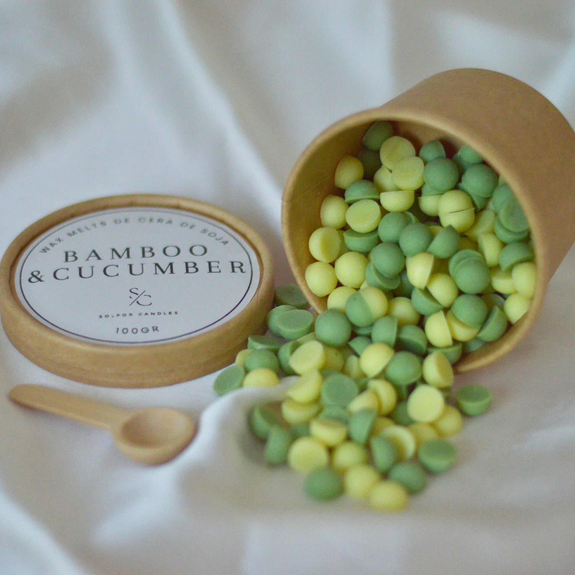 Fresco, con toques de bambú y pepino, así son nuestros wax melts de Bambú & Cucumber.