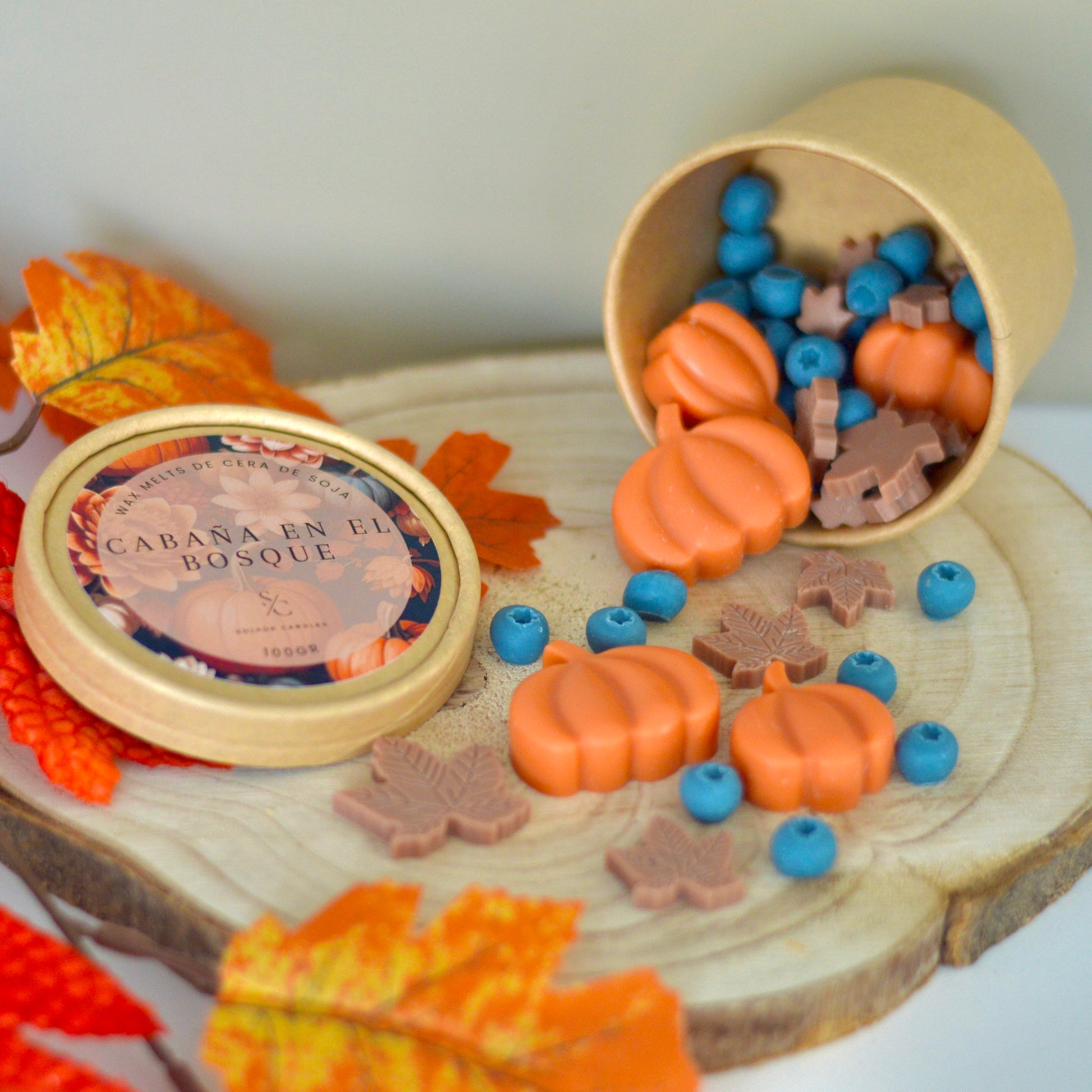 Refúgiate en la calidez de Cabaña en el Bosque, unos wax melts que evocan el confort de una chimenea encendida en medio de la naturaleza.